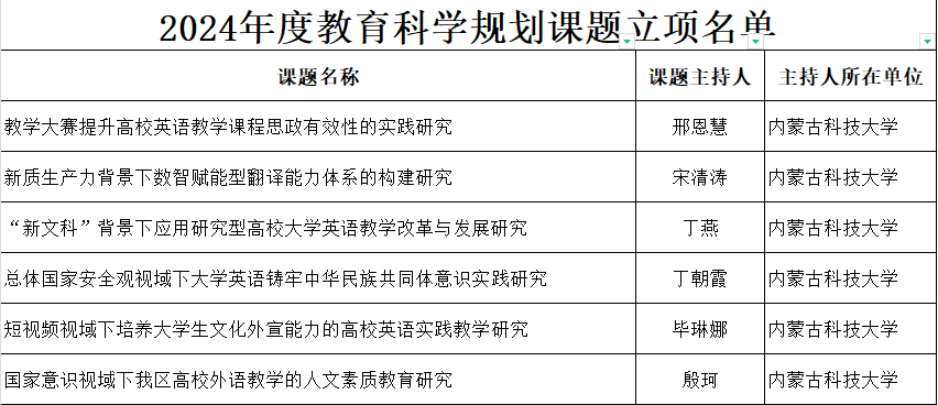 近日,2024年度自治区教育科学规划课题在自治区教育厅官网公示,ladbrokes中文 教师邢恩慧、宋清涛、丁燕、丁朝霞、毕琳娜、殷珂获批立项,特此祝贺! ladbrokes中文 学科办 2024年10月23日