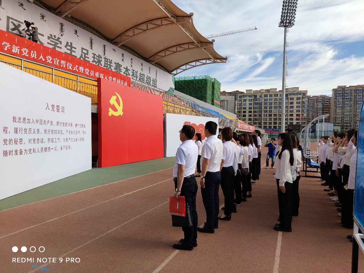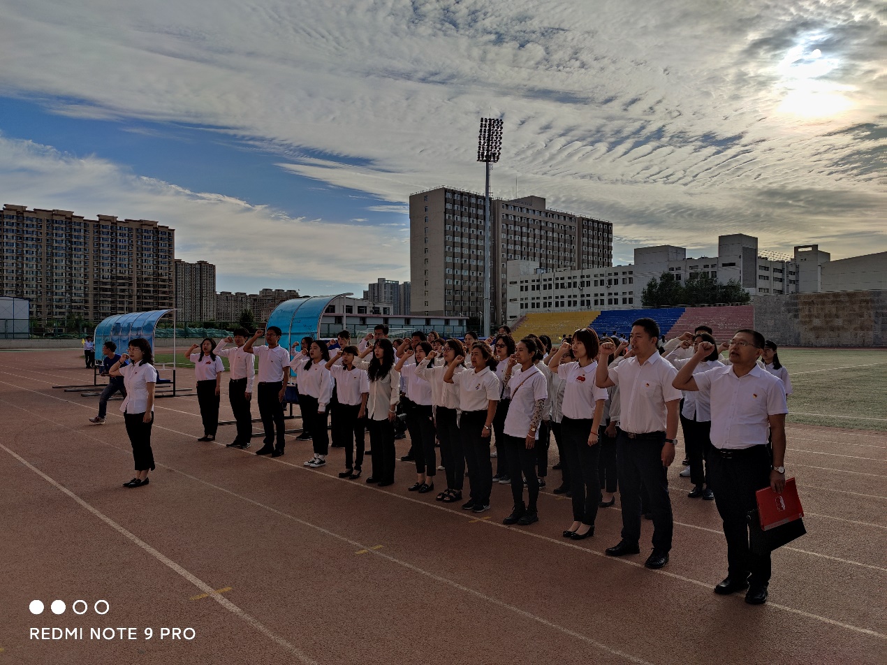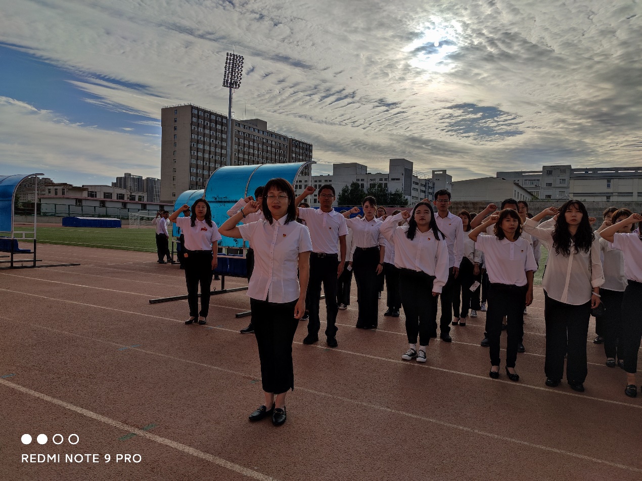 为庆祝中国共产党成立100周年,ladbrokes中文 党总支于6月18日清晨在校田径场组织全体师生党员参加了重温入党誓词活动,由ladbrokes中文 党总支书记张利敏同志带领大家一起宣誓。
