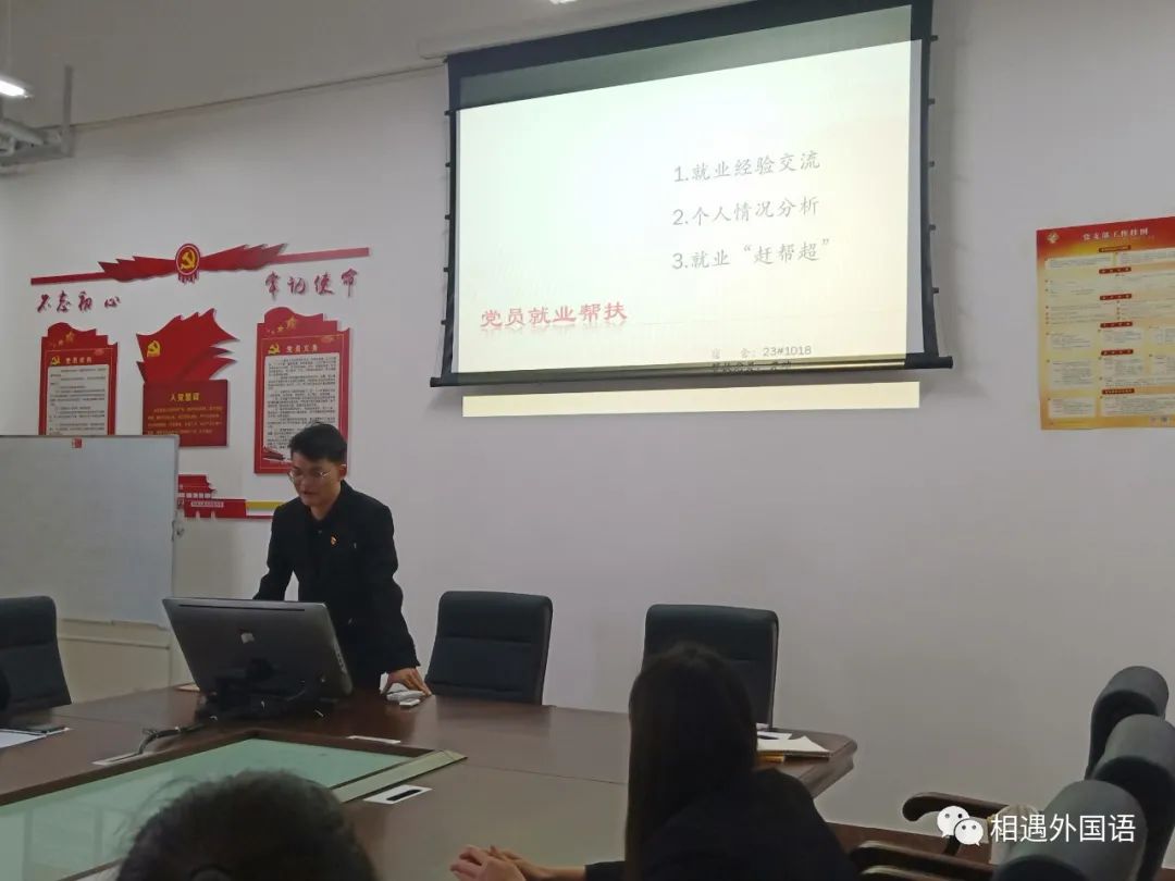 2021年5月8日ladbrokes中文 学生党支部召开党员大会,党史学习悟思想,党员帮扶促就业。学生党支部书记带领全体学生党员进行党史学习,积极带领学生党员发挥党员的先锋模范作用,自身积极就业的同时,开展我是党员我帮你,就业“1+1”协同帮扶工作,覆盖面达到60人。