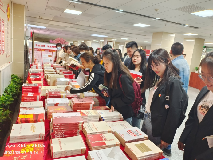 活动中,党总支书记张利敏对本次党日活动的开展进行了具体的部署和安排。首先,党总支开展了学党史测试活动,确保学习的效果。全体师生党员参加了新民主义革命时期的党史学习情况测试;其次,组织读书沙龙活动。教工党支部书记吴铁军和学生党支部代表李金铭两位同志分别分享了“如何研究中共党史”、“习近平总书记在纪念五四运动一百周年大会上的讲话”两篇读书内容。接着,全体师生党员参观了图书馆陈列的党史读书角。最后,各党支部以党小组为单位对新民主主义革命时期和社会主义革命和建设时期的党史分别进行了研讨交流,并提交了专题研讨的个人发言材料。