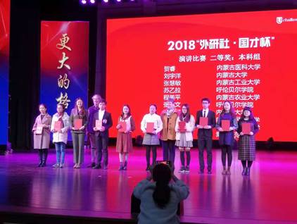2018年“外研社•国才杯”全国大学生英语演讲、写作、阅读大赛内蒙古赛区复赛于113落下帷幕,我校共派出六名选手参赛,取得了优异的成绩:2人获得特等奖;3人获得二等奖;1人荣获三等奖。