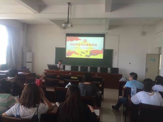 2018年5月24日下午,ladbrokes中文 党总支副书记副院长谢利君教授为全体教职工党员讲党课,主题为:学习习近平在十三届全国人大一次会议内蒙古代表团审议的讲话精神。