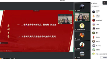 专题讲座上,付春华老师一是从党的二十大报告中提出的新观点、新论断、新思想着三个部分,对党的二十大报告进行了系统讲解和深入阐释。二是着重讲述了以中国式现代化全面推进中华民族伟大复兴。付老师指出中国式现代化,是中国共产党领导的社会主义现代化,既有各国现代化的共同特征,更有基于自己国情的中国特色。中国式现代化已经成为人类现代化史上最亮丽的风景线,它不仅改写着世界现代化的版图,而且破除了西方现代化的神话和迷雾,塑造着现代化新的范式和格局。深刻把握中国式现代化的中国特色和本质要求,做好未来五年全面建设社会主义现代化国家开局起步工作,将为实现第二个百年奋斗目标奠定坚实基础。