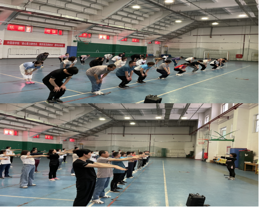 运动会开始前,由朱淼老师负责带着全体老师们进行了赛前活动热身,主要帮助参赛选手减少运动过程中受伤的风险。通过不同方式的热身,可以让身体逐渐进入热身状态,提高身体的敏捷性和灵活性,增加肌肉、关节和韧带的活动范围,从而更好地进行比赛。