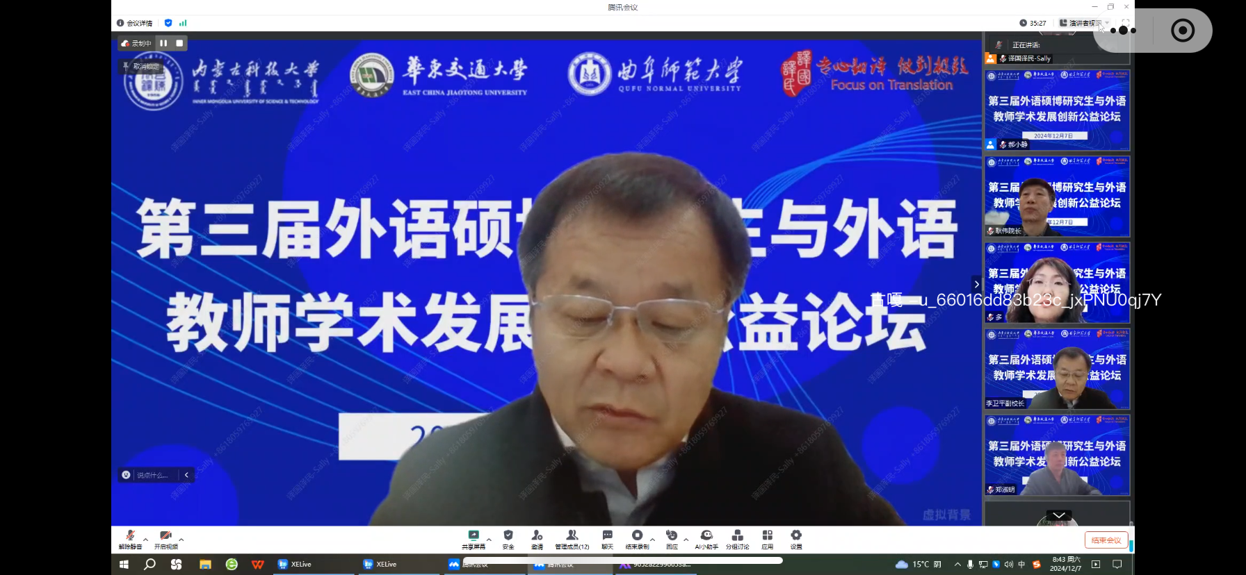 主办,译国译民集团承办,华东交通大学、曲阜师范大学合办。来自广东外语外贸大学、华中科技大学、哈尔滨工业大学、东北师范大学、内蒙古科技大学等全国各大高校的专家学者、师生代表线上线下参加了论坛。