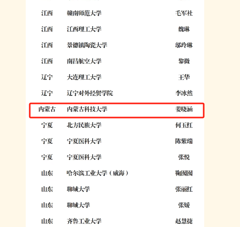 姜晓涵老师在课程思政案例专项赛中获特等奖,是内蒙古地区唯一获得特等奖的选手,其他6位教师获三等奖。